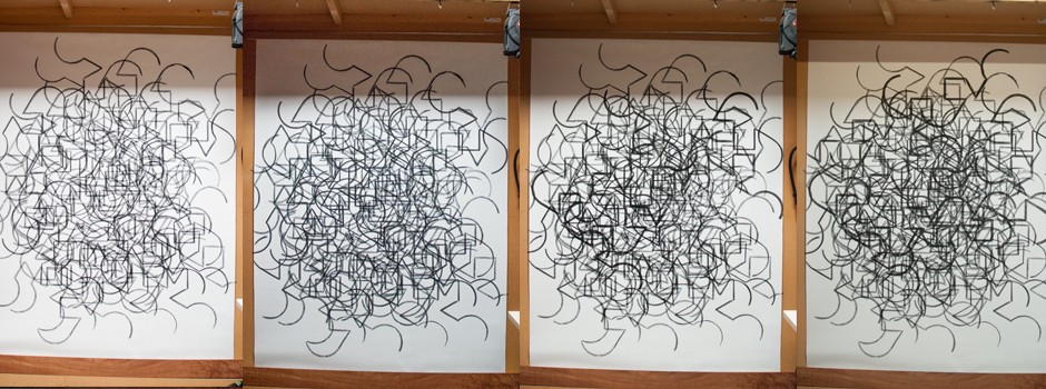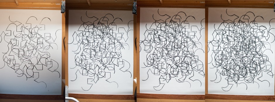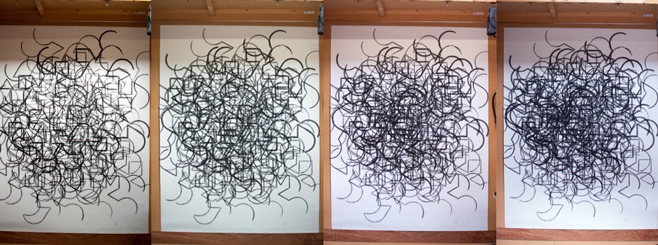 I have just started to work on a project that is researching structure within chaos. The canvas is 220x150cm and I’m using charcoal.